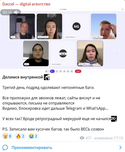 Для нас этот опыт стал настоящим трамплином к покорению медиа. Мы узнали, как организовывать команду внутри, какие инфоповоды СМИ возьмут в публикацию, а что пропустят мимо. Мы заявили о себе внутри индустрии, получили репосты от более крупных игроков и охват в 1700 человек (статья пишется в день выхода проекта, так что это ещё не предел))). На мотивации внутри команды даже начали вести Запретграмм….