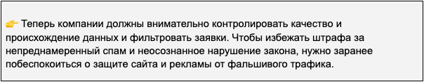 Однако пострадать от штрафов могут добросовестные организации. Например, если на сайте компании номер реального абонента оставил бот, который перешел по рекламе и отправил заявку с чужими контактами. Позже эта информация будет использоваться для обзвона, вот только окажется, что абонент не давал на то своего согласия.