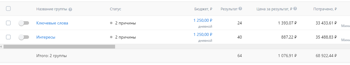 Поверьте, друзья, такое решение окупиться. Во-первых, вы сможете персонализировать объявление. Во-вторых, поймете какая именно аудитория лучше работает, с какими креативами выгоднее делать связку и какой бюджет необходим. Далее отсекаем ненужные РК и наслаждаемся результатом с удвоенной выгодой.