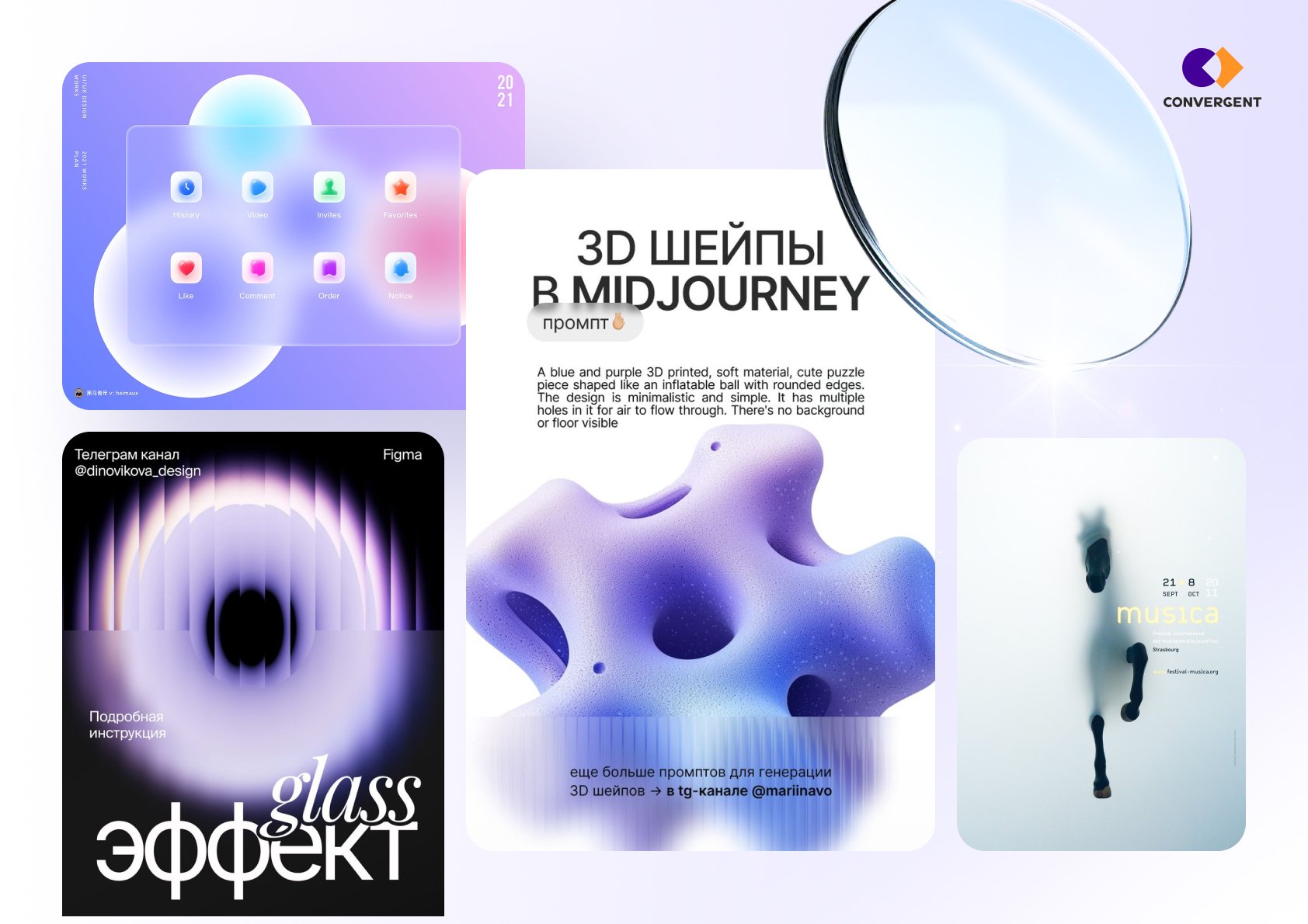 Важно не копировать, например, Apple с его жидким стеклом буквально. Рабочая стратегия — сочетать стеклянные эффекты с динамическими фонами, коллажами, 3D-элементами и микроанимацией. Это позволяет сохранить уникальность визуального языка.