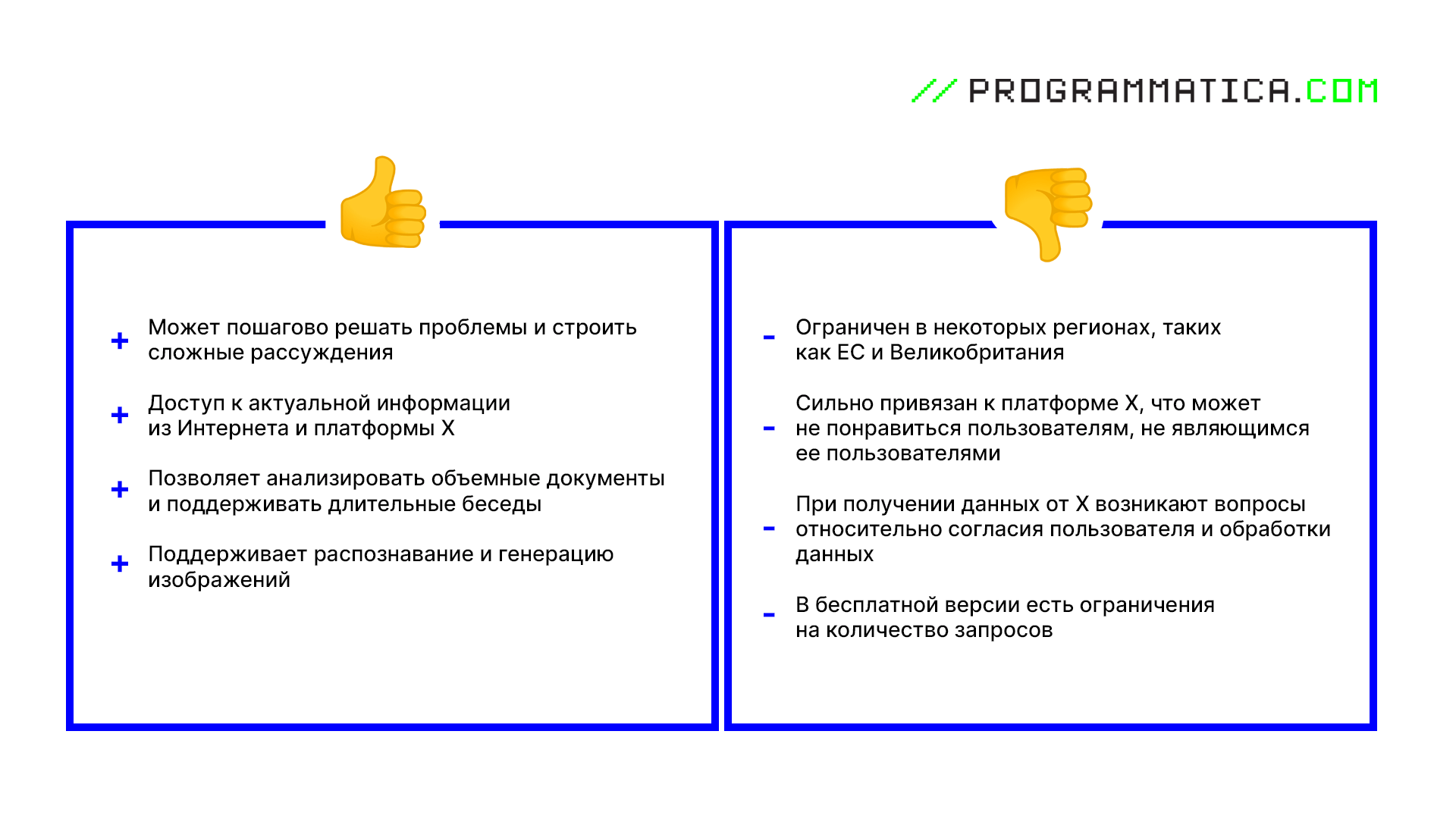 Grok: Особенно хорош в генерации кода и оптимизации алгоритмов. Он может эффективно создавать и улучшать код, а также предлагать решения для сложных задач, что делает его полезным для разработчиков.