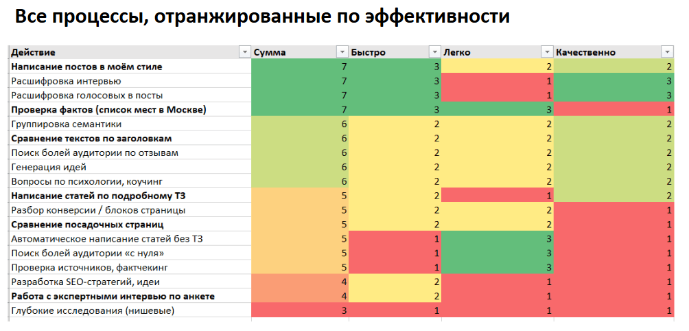 Серьёзные задачи типа составления стратегий, выработки гипотез, написания экспертных материалов и фактчекинга пока лучше оставлять живым специалистам.