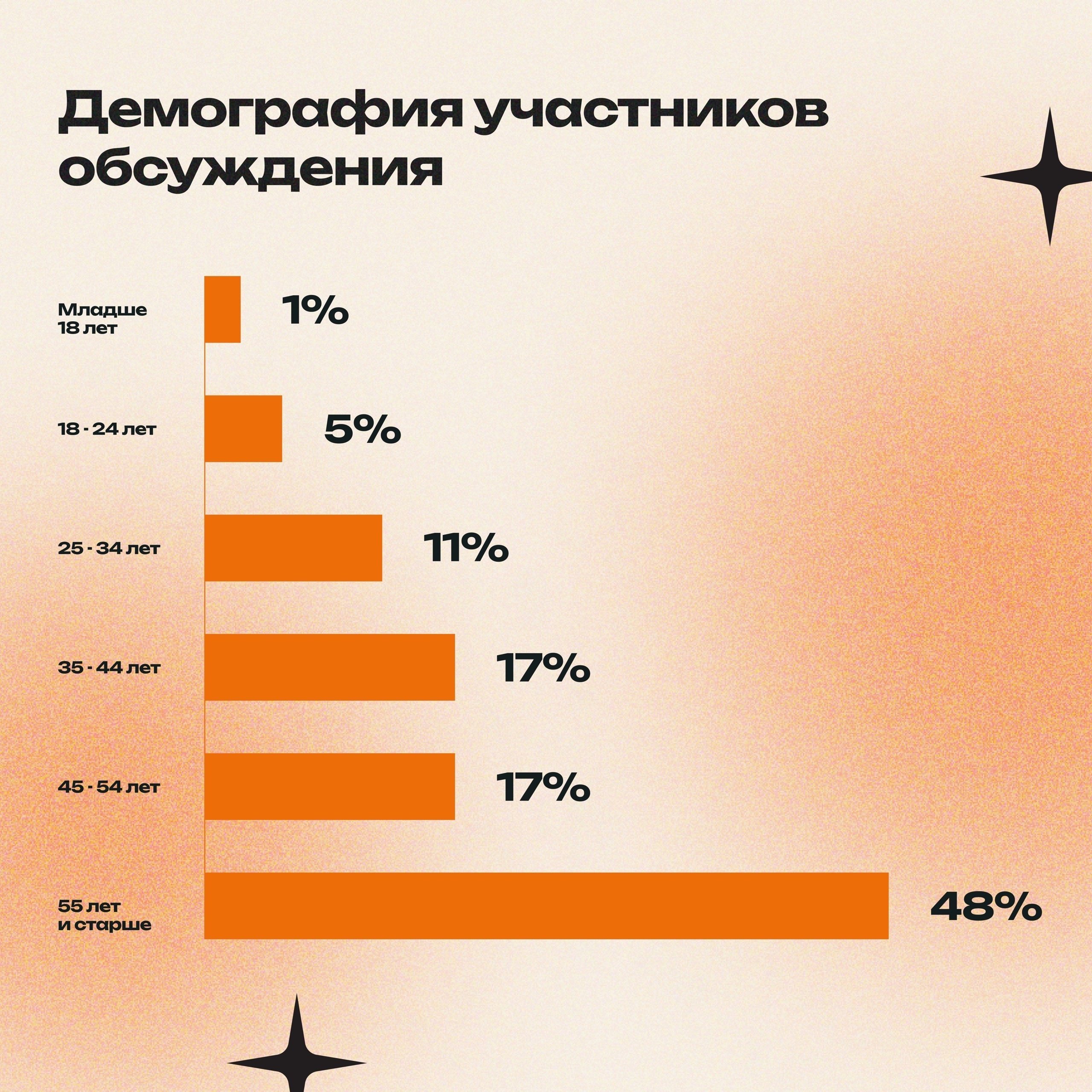 • В дискуссии принимали участие в основном мужчины зрелого возраста (55+), которых зачастую и приписывают к «диванным критикам»