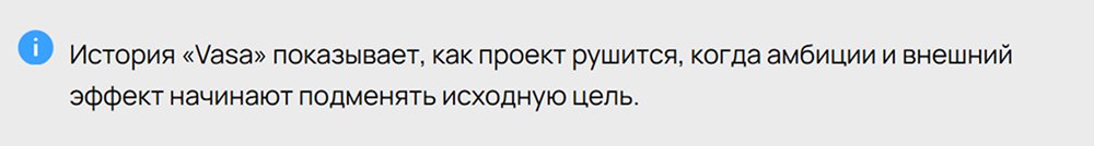 История «Vasa» и по сей день напоминает нам: если с самого начала не зафиксировать, что именно считается готовым результатом, проект легко уходит от своей цели, обрастает лишним, теряет устойчивость и в итоге не выдерживает запуска.