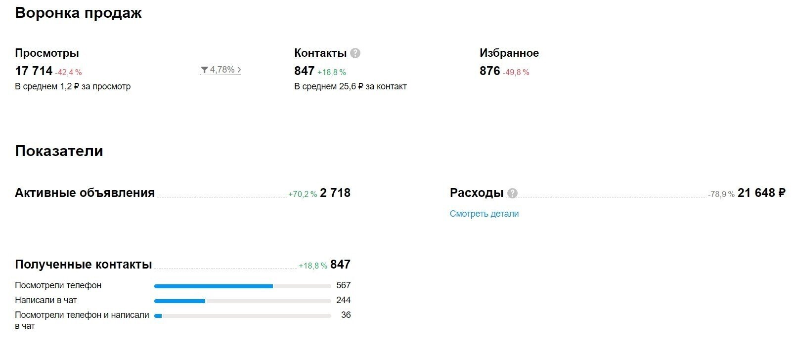 Следите за статистикой и эффективностью объявлений. Т.к. каждое объявление стоит денег, необходимо просчитывать экономику - сколько контактов приносит каждое и от этого считать CPL.