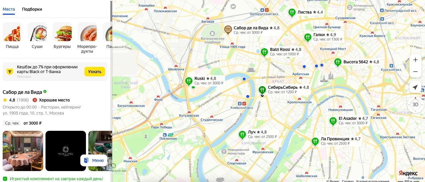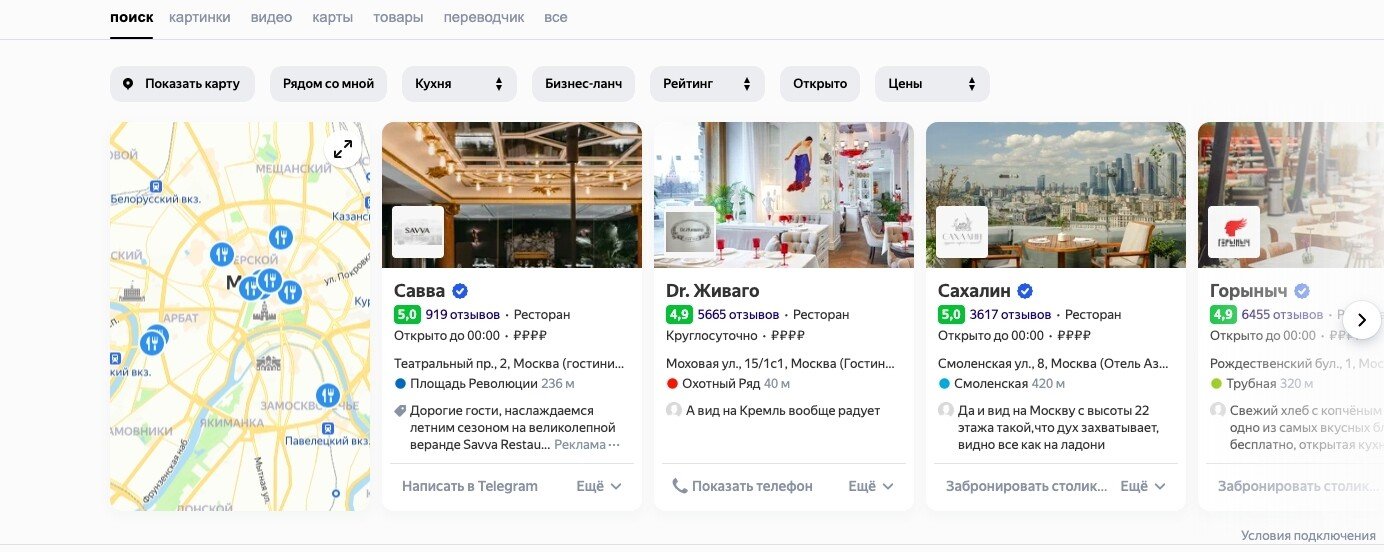 Как правило, больше всего буста и профита для ресторанов дает именно приоритетное размещение только в Картах и Навигаторе.