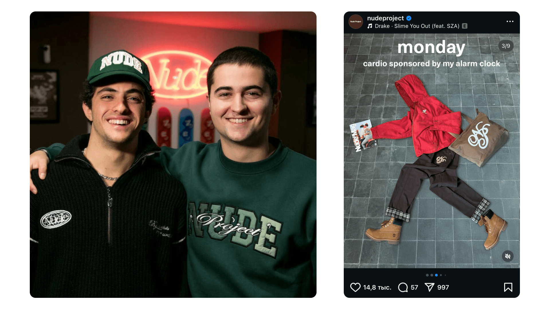 Их стратегия сработала: бренд перестал быть просто производителем одежды и стал медиа, где каждый пост — часть общей истории. Nude Project не показывает продукт, он показывает людей вокруг него, и именно это превращает контент в источник доверия. Поэтому аудитория не просто покупает вещи: она чувствует, что принадлежит сообществу.