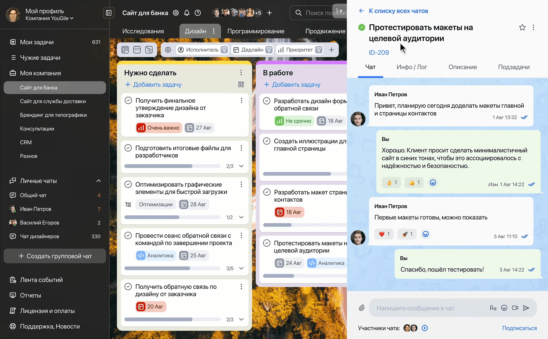 С таск-трекером не надо звонить и ждать, когда коллега появится онлайн. Удобное общение — одно из главных плюсов работы в таск-менеджере.