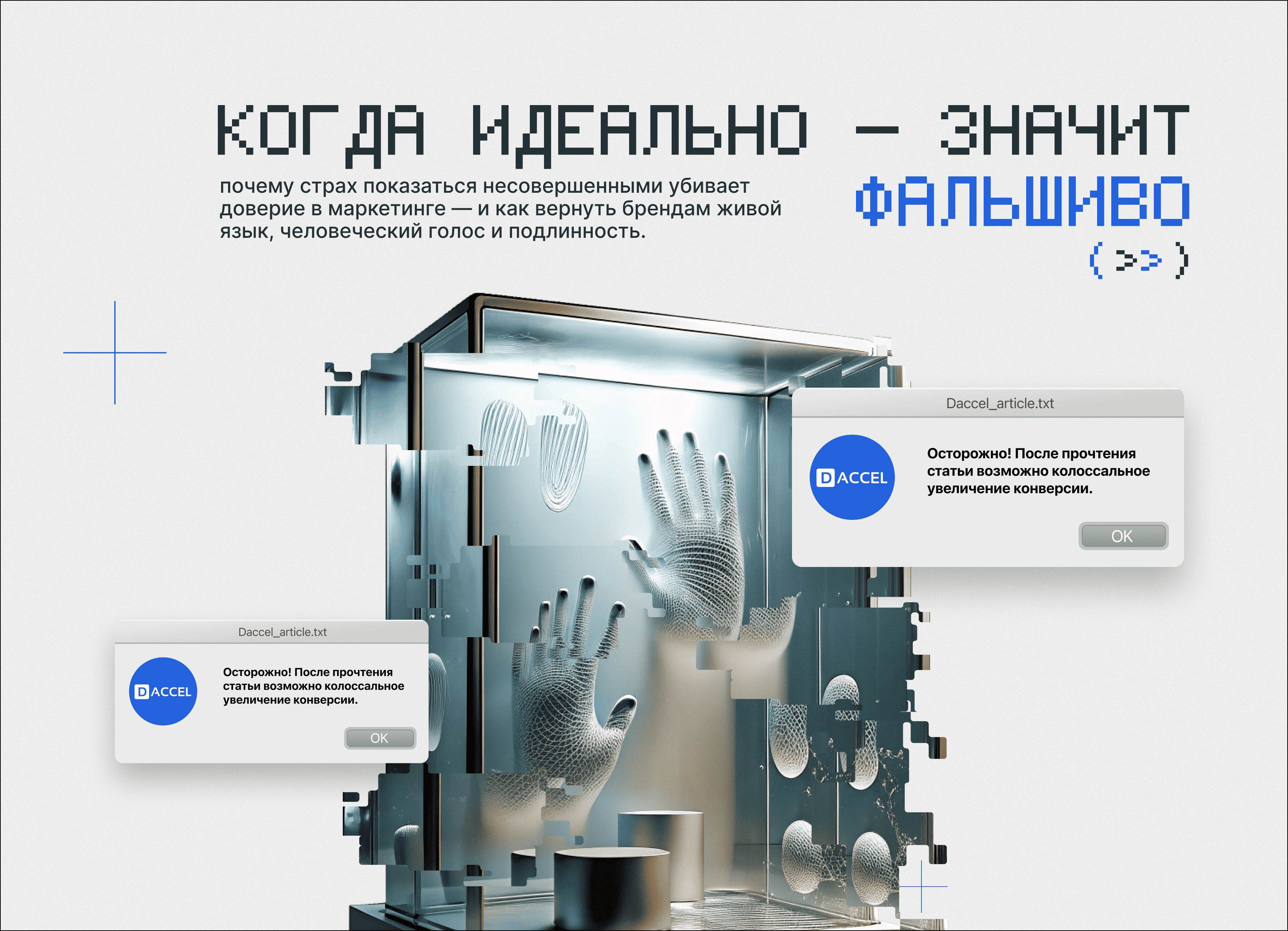 В Daccel мы стараемся помогать компаниям не бояться несовершенства, чтобы выстраивать отношения с аудиторией иначе: люди чувствуют не маркетинг, а историю, голос и личность. Именно в этих маленьких «царапинах» и живёт доверие, которое невозможно подделать. И если задуматься, открытость не столько про маркетинг — сколько про близость компании к «своим людям».