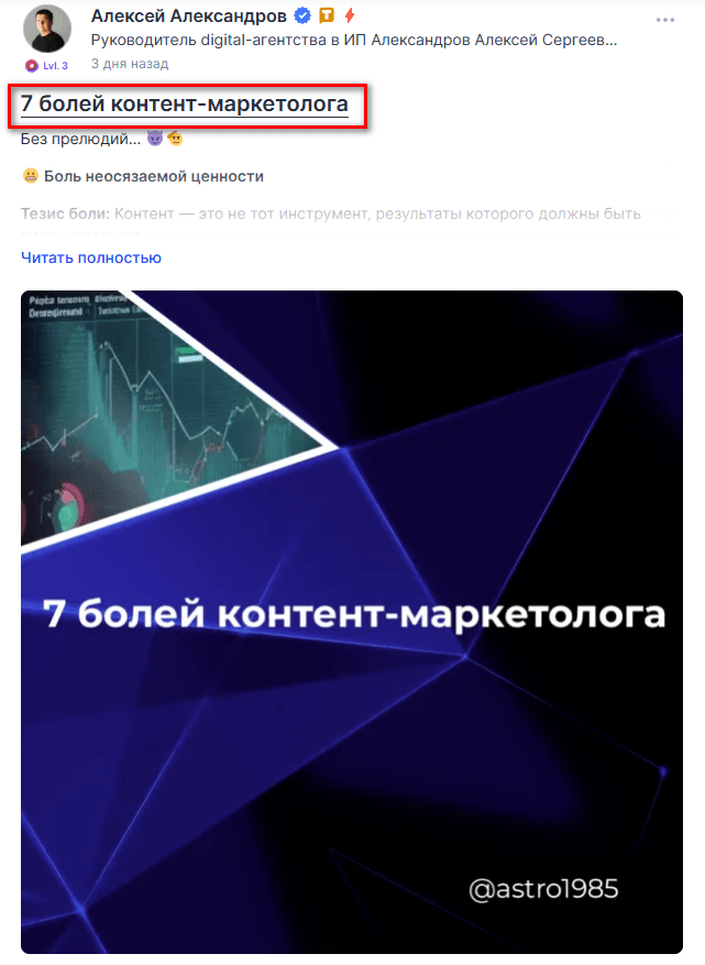 Рассмотрим, основные элементы коммерческой статьи и поста.