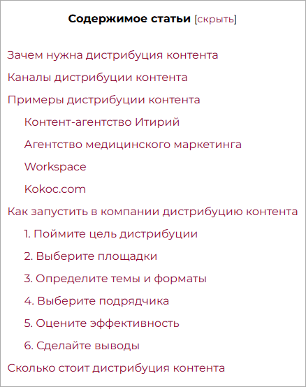 Задача: Дробить текст на логические блоки, улучшать навигацию и SEO.