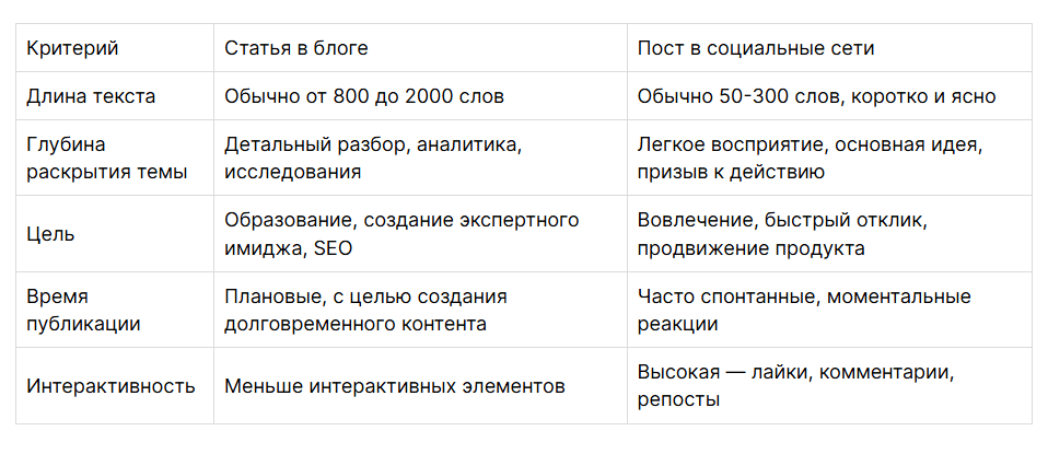 Выбор между статьей в блоге и постом в соцсетях зависит не только от длины и формата, но и от целей, аудитории, темы и контекста. Правильное использование этих инструментов поможет вам быть более эффективным и достигать поставленных целей.