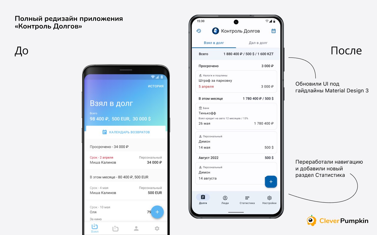 Редизайн интерфейса финтех-приложения «Контроль Долгов»