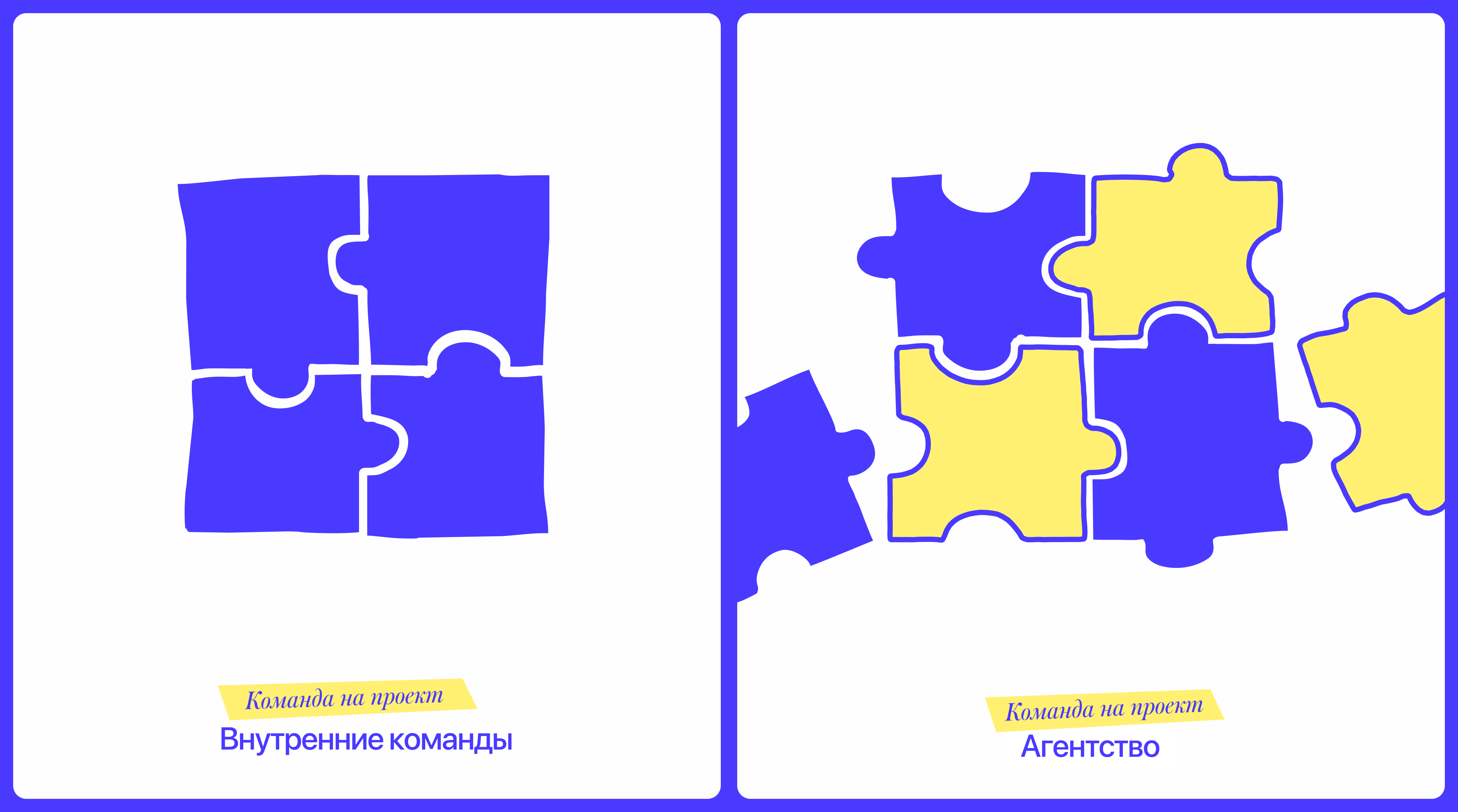 Во внутренней команде всё новое часто делается по остаточному принципу — сначала рутинные задачи, потом остальное. Иногда исполнители работают «по часам» — делают задачи, потому что так надо, а не потому что болеют за результат. Внедрение чего-то нестандартного может тормозиться старыми привычками и нехваткой экспертизы. Получившийся продукт сложно выделить в отдельный актив (для инвесторов, отчётности или постановки на баланс).