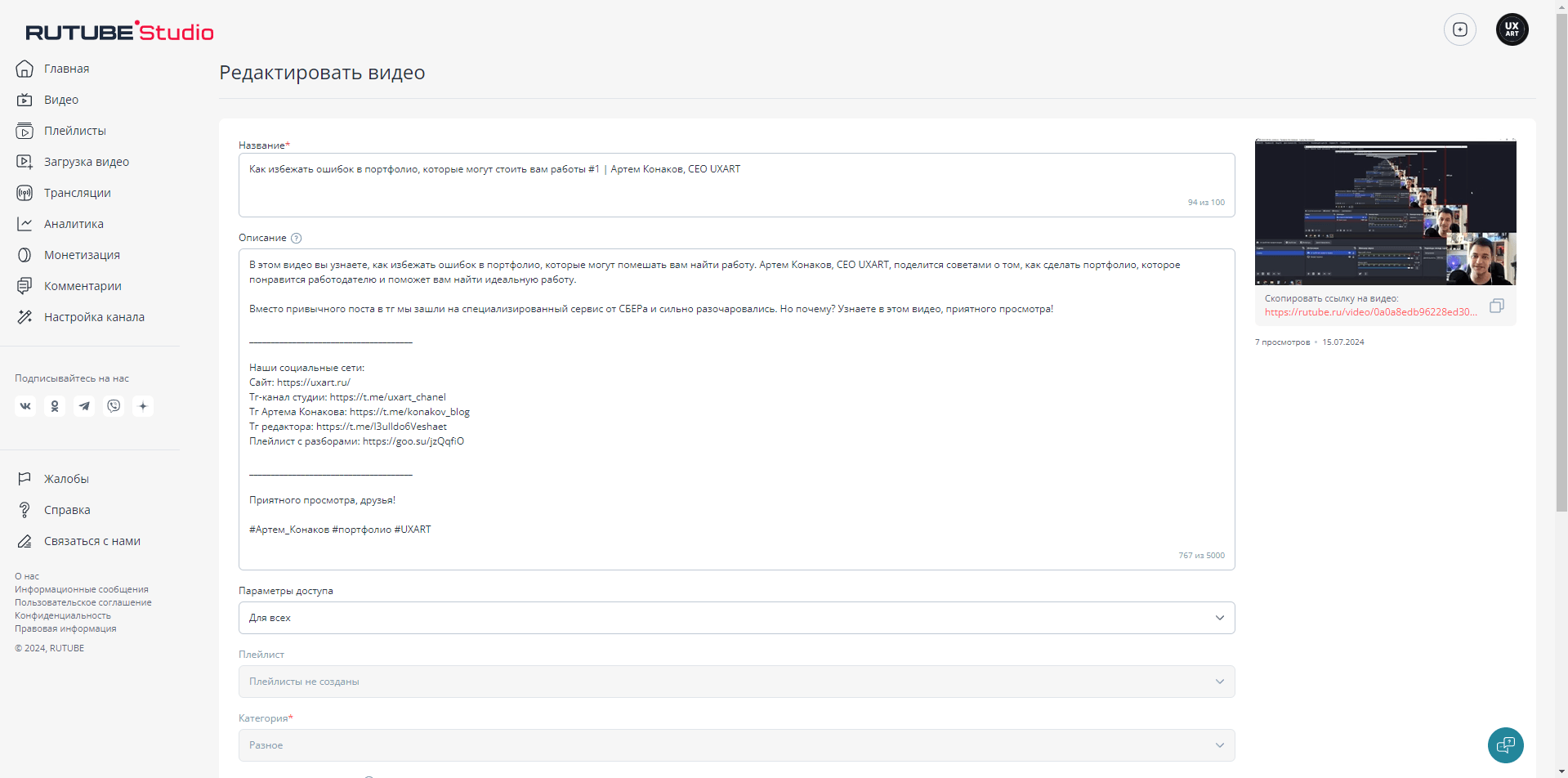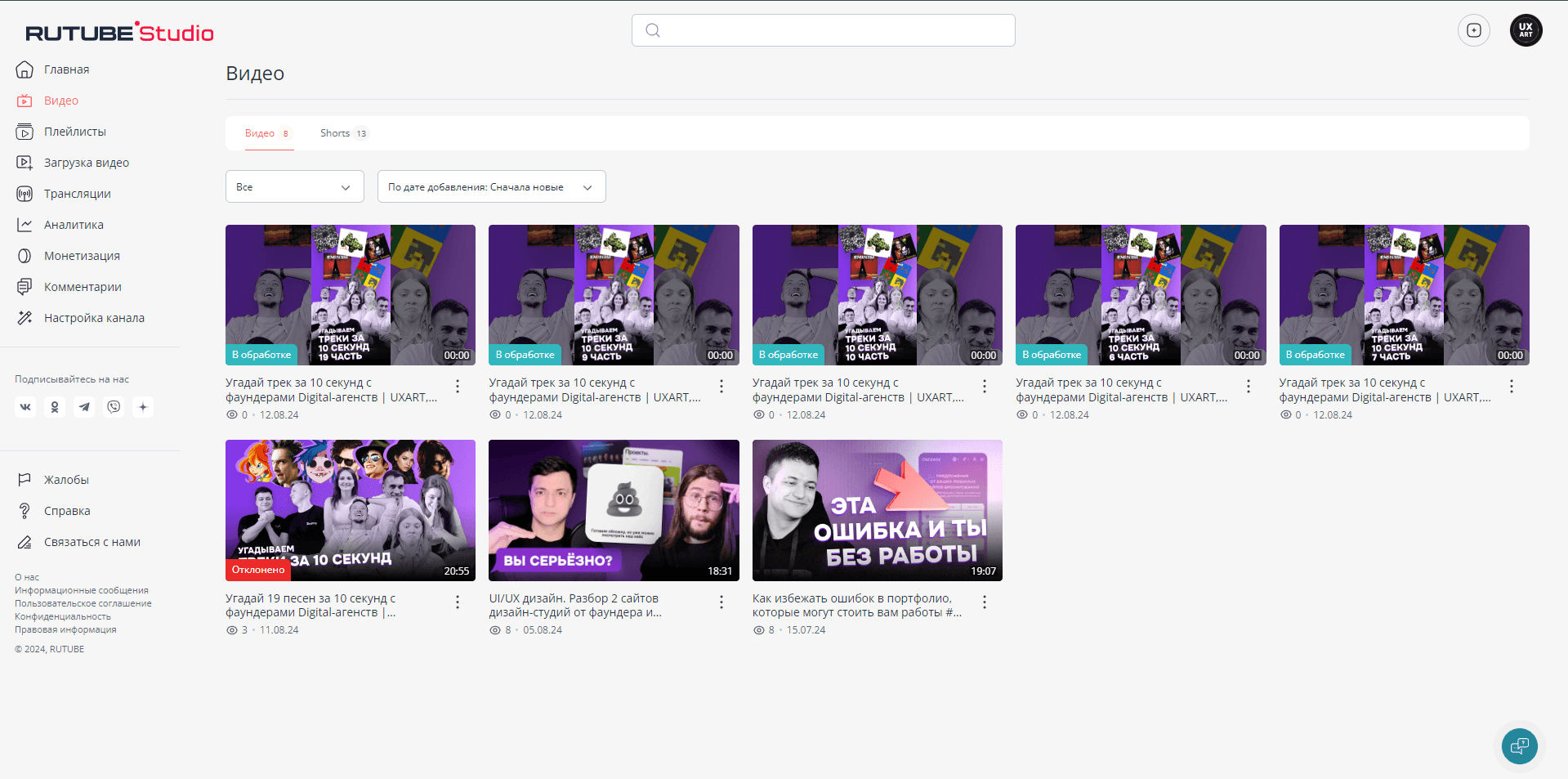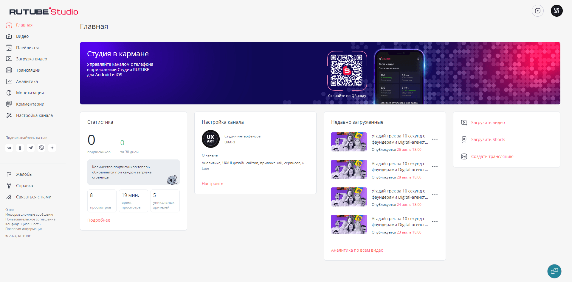 Но давайте теперь перейдем к творческой студии — Rutube Studio.