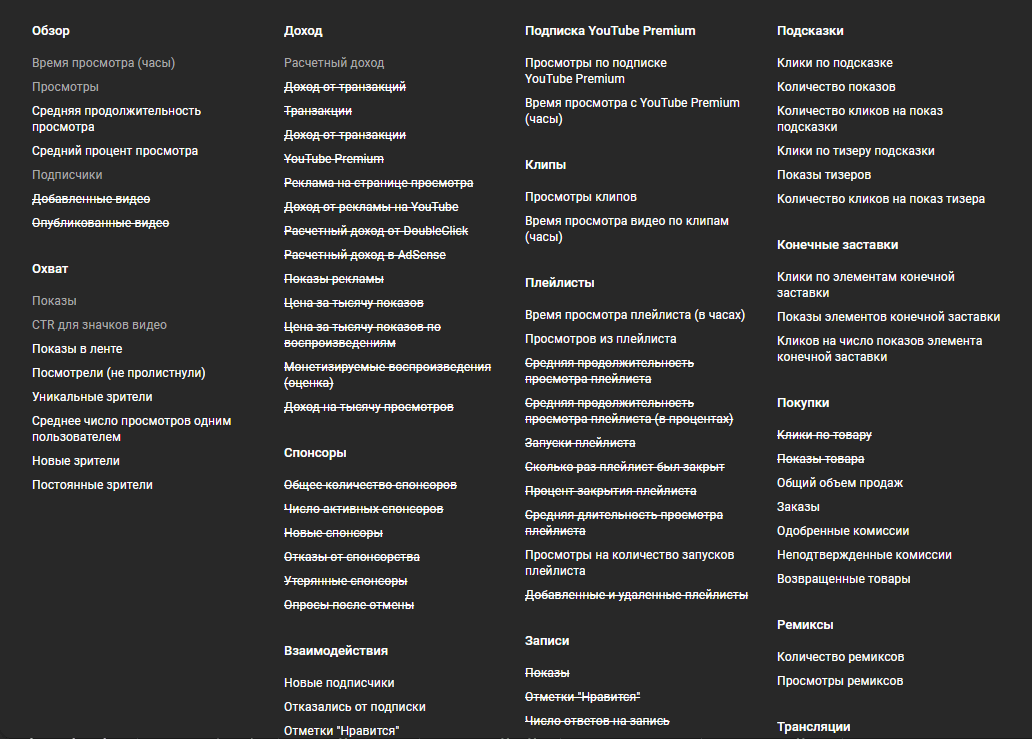 Давайте просто для сравнения вспомним, как выглядит аналитика на Ютубе.