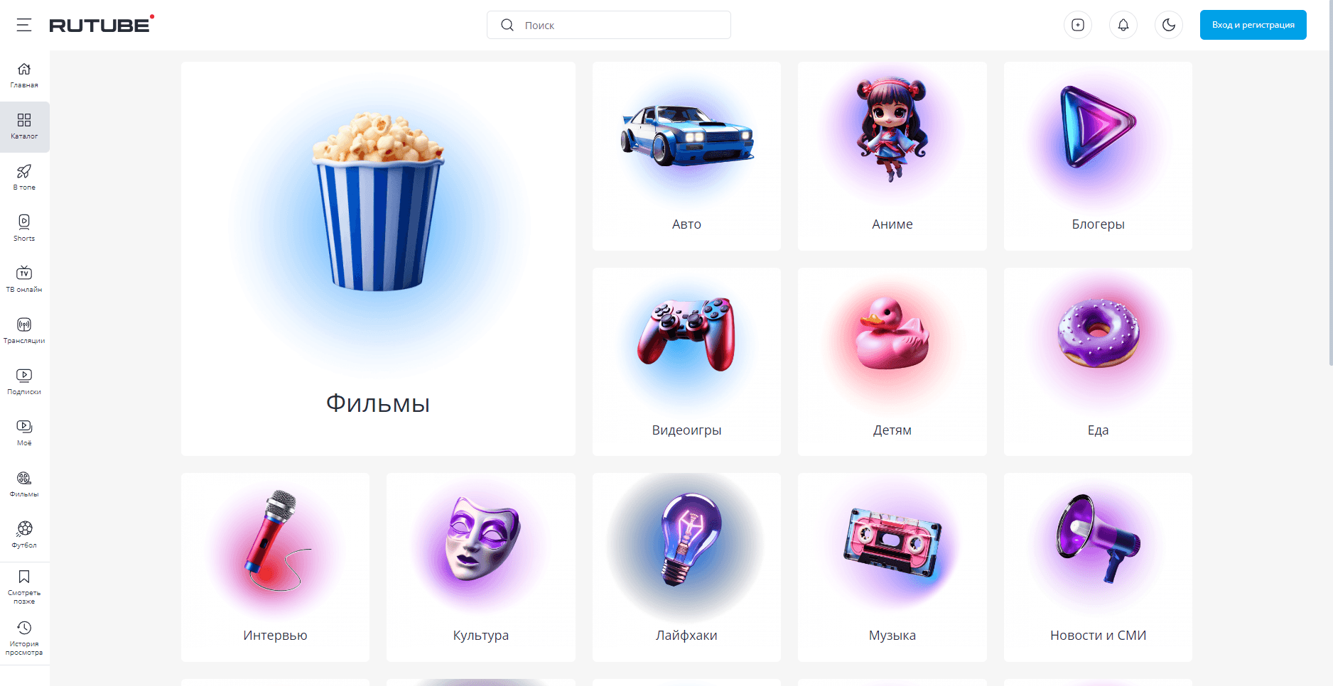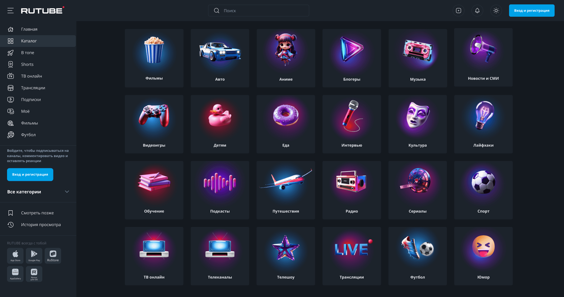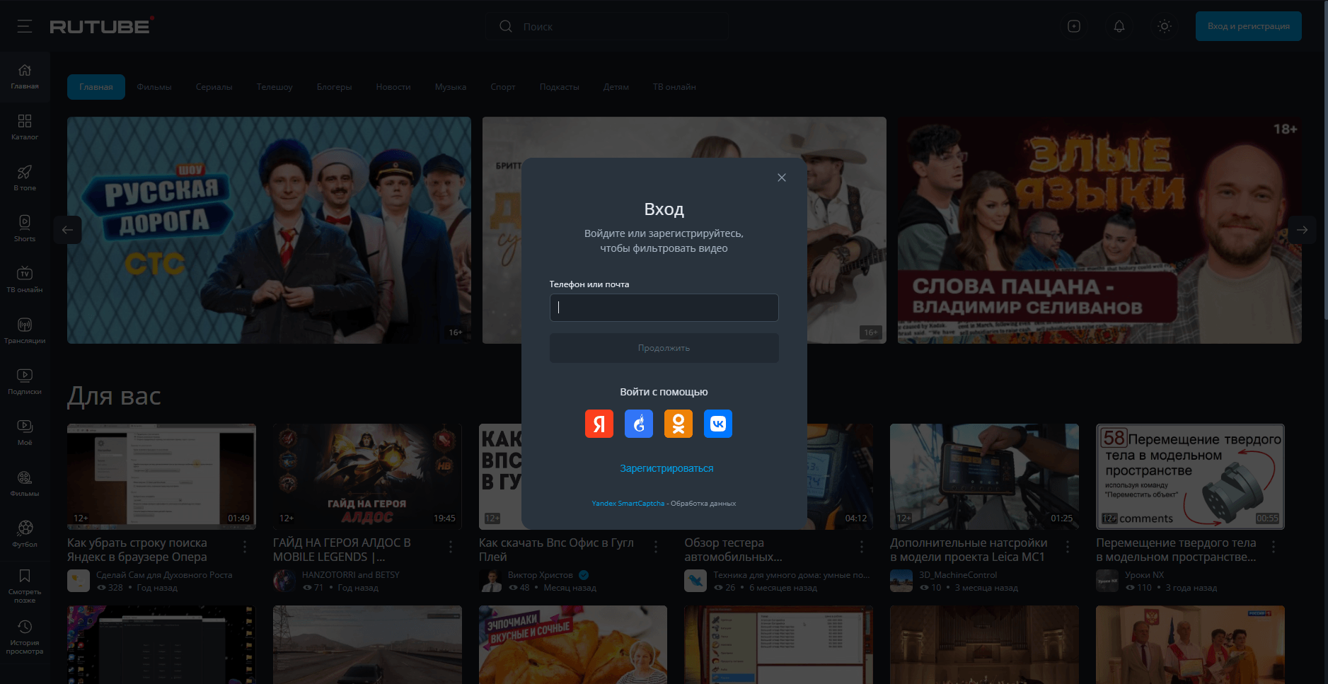 Для того чтобы узнать ответ на этот вопрос, нужно авторизоваться или создать аккаунт. И работает это с каждой категорией. Это можно обосновать желанием повысить конверсию в регистрации, Rutube, как ни как, бизнес. Но если мы сравниваем подходы Ютуба и Рутуба, то видно, что на первом сервисе таких «квестов» с регистрацией нет.