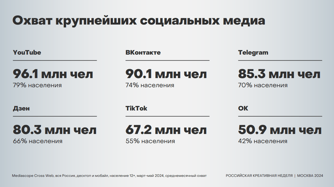 Даже, несмотря на то, что по исследованию 2024 года Ютубом в РФ пользовались 90+ млн.