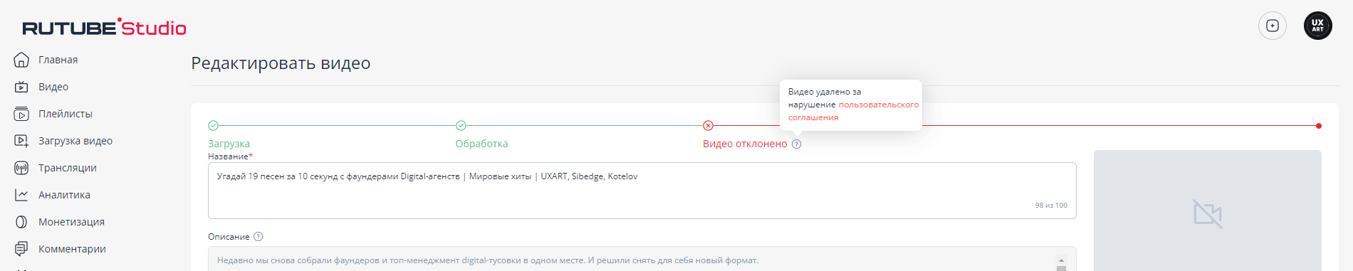Модерация — пожалуй, одна из самых странных и непонятных вещей на Рутубе. Зачем, а главное почему модерировать ролик настолько долго — вопрос к платформе. Но еще большие вопросы возникают на моменте ошибки.