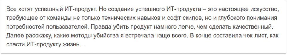 Частая ошибка — начинать текст не с проблемы, а с темы. Автор подробно рассказывает, как всё устроено, но ни разу не объясняет, зачем это нужно читателю. А ведь без боли нет внимания. Люди читают не ради знаний, а чтобы найти ответ на вопрос.