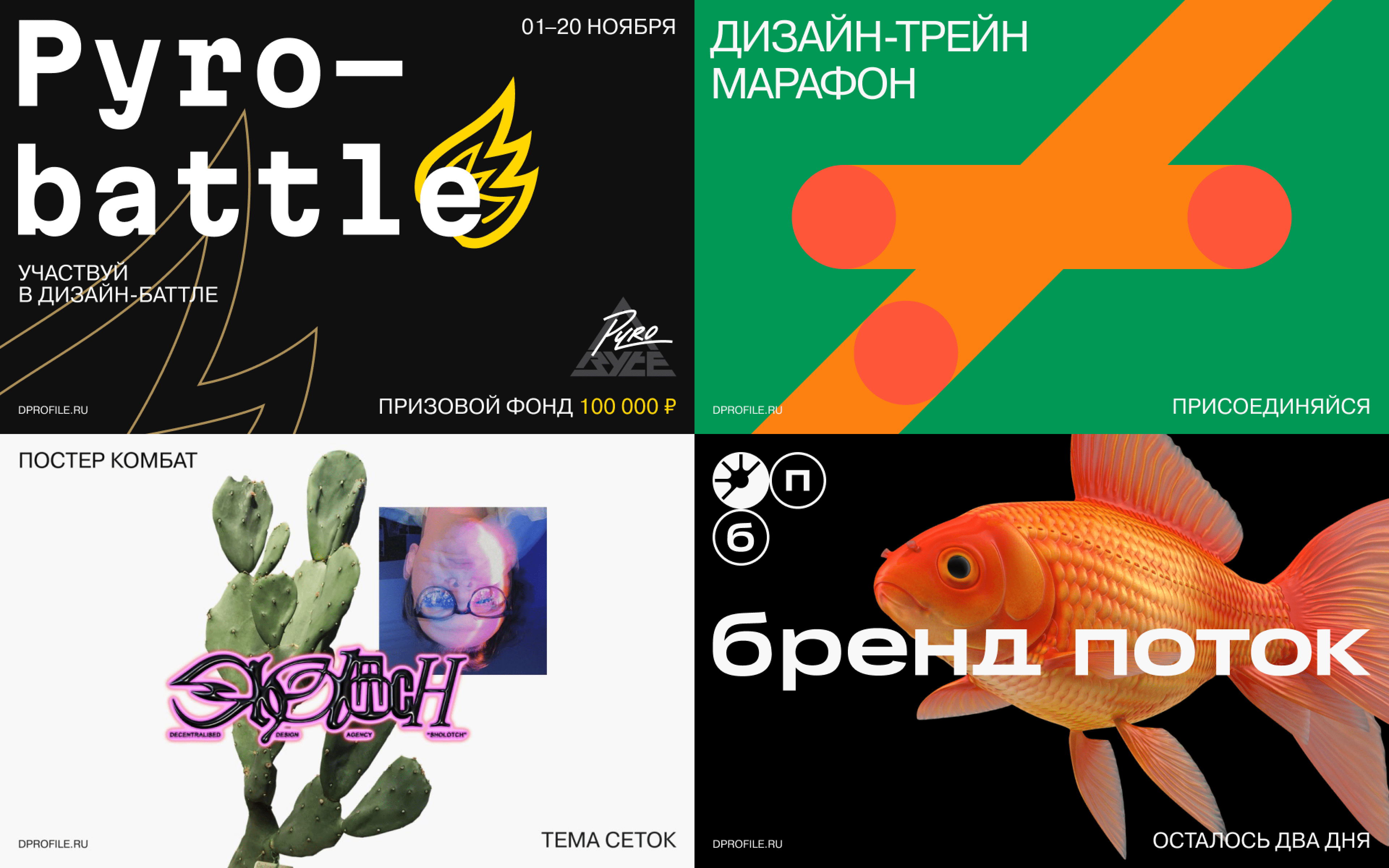 Спецпроекты. Периодически с другими представителями дизайн-индустрии мы устраиваем совместные спецпроекты. В них дизайнерам нужно подготовить проект по специальному творческому техзаданию, а результат опубликовать на Dprofile. Так мы получаем новую аудиторию и пользователей. Нашим партнёрам такие активности помогают стать заметнее на дизайн-рынке, прокачать эйчар-бренд и находить для себя новых талантливых дизайнеров.
