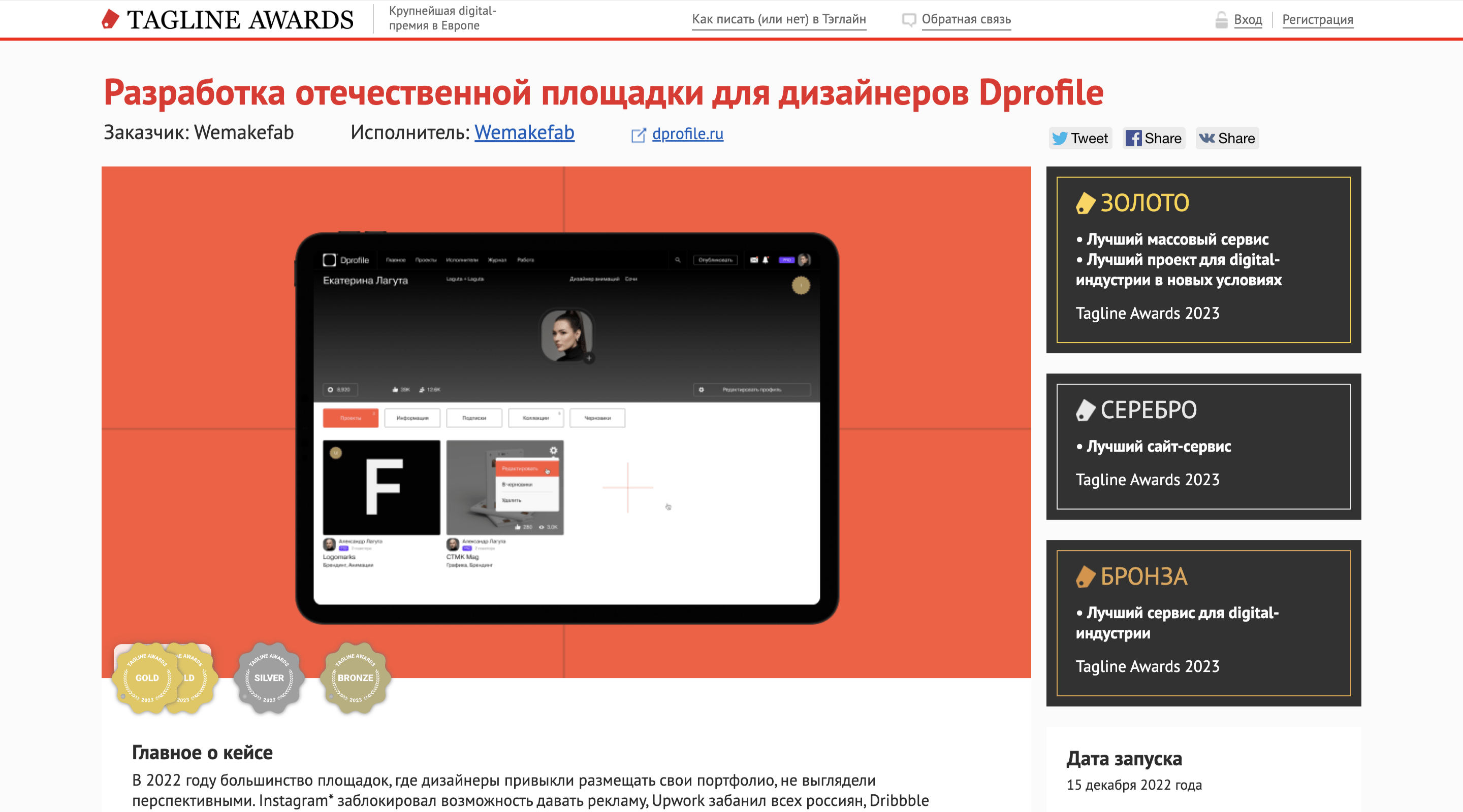 Кейсы для диджитал-конкурсов. Мы подаём Dprofile на все отечественные диджитал-конкурсы: Tagline Awards, «Золотой сайт», «Рейтинг Рунета», Ruward Award, Workspace Digital Awards. Награды за победы в них важны не только как фактическое достижение, но и как признание рынка.