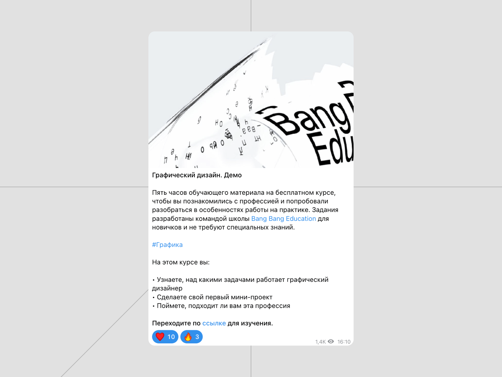 Посты с материалами от преподавателей и менторов. Когда на Dprofile размещается какая-то школа или ментор, мы поясняем, что нужно постоянно находиться в инфополе аудитории. Поэтому мы просим их присылать какие-нибудь обучающие материалы и публикуем их в телеграм-канале.