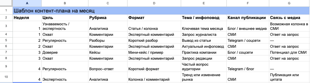 Такой набор даёт баланс между «долгими» форматами (статьи/колонки), «быстрыми» форматами (комментарии и ответы на запросы) и «поддерживающими» форматами (короткие разборы). В итоге контент-стратегия не зависит от идеальных условий: даже если нет времени на большие проекты, вы продолжаете выходить в медиа и поддерживать регулярность за счёт комментариев и запросов, а затем докручиваете систему якорными статьями.