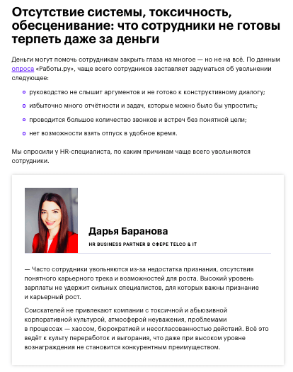 Это ваш «якорный» формат, потому что именно в статьях проще всего показать систему мышления. То есть понятно рассказать о миссии своего бренда, пошагово объяснить тему, озвучить свою позицию и выводы. Колонки и статьи также удобны для внешнего размещения: их легче предложить площадкам, встроить в блог компании, использовать как ссылочную базу для продаж и PR. Плюс этот формат долго живёт, — хорошая статья продолжает приводить людей из поиска и цитироваться, пока тема актуальна.