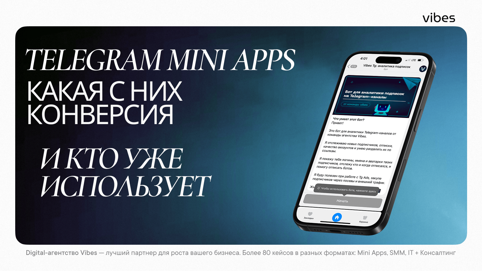 Привет, я Никита, основатель digital-агентства Vibes. Мы все еще создаем ботов и мини-приложения в самом популярном в России мессенджере, и я продолжаю делиться опытом работы агентства в этом блоге и в Telegram-канале, где нас читают уже 65 000 человек. Подпишитесь и вы.