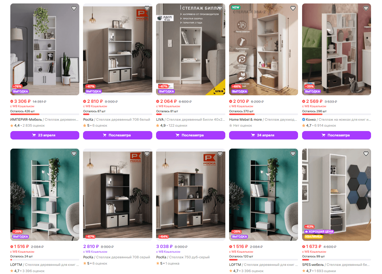 Стеллажи на ВБ весьма доступны по цене и популярны