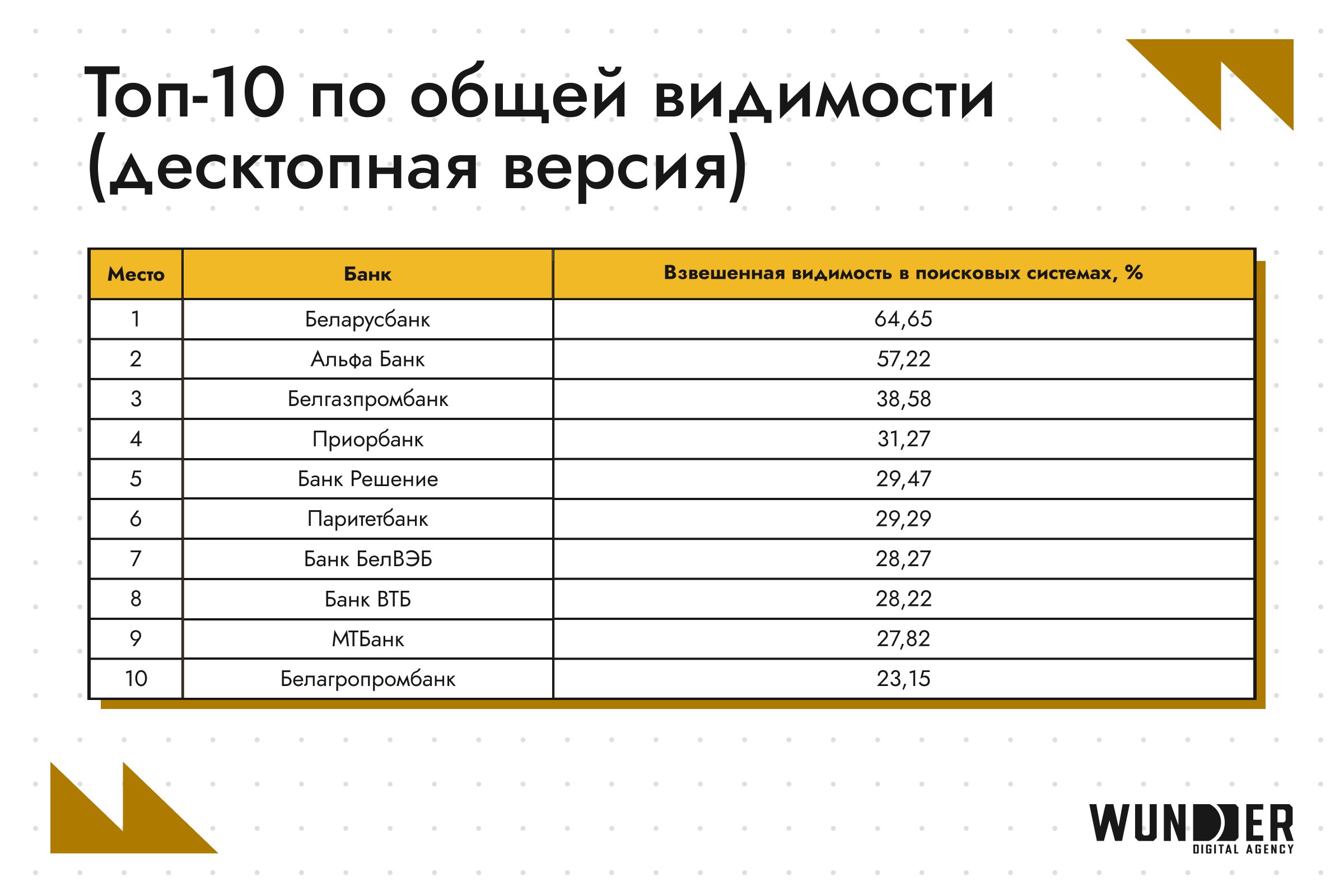 Специалисты инновационного digital-хаба Wunder Digital проанализировали, какие банки формируют поисковую повестку в Беларуси и как распределяется их присутствие в выдаче. Команда агентства регулярно делится результатами исследования рынка, однако на этот раз методология была расширена. Если раньше рейтинг строился только на мобильном трафике, то теперь эксперты оценивают видимость сайтов как в мобильной, так и в десктопной выдаче. Новый подход продиктован изменениями в поведении пользователей и требованиями поисковых систем.