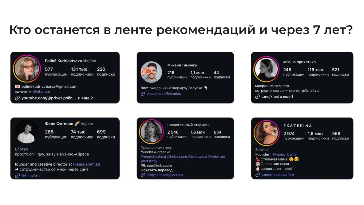 Если вы — бренд, который работает с блогерами, время подумать стратегически. Через несколько лет большинство инфлюенсеров, с которыми вы сотрудничаете, либо исчезнут, либо будут не актуальны. Уже сейчас стоит: