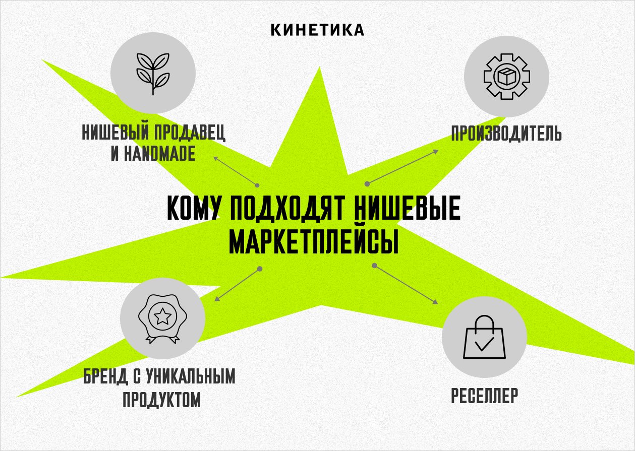 Работает для локальных продуктов питания, авторских расходников, подарочных наборов. Кафе, шоурумы, концептуальные магазины готовы брать небольшие партии уникального товара.