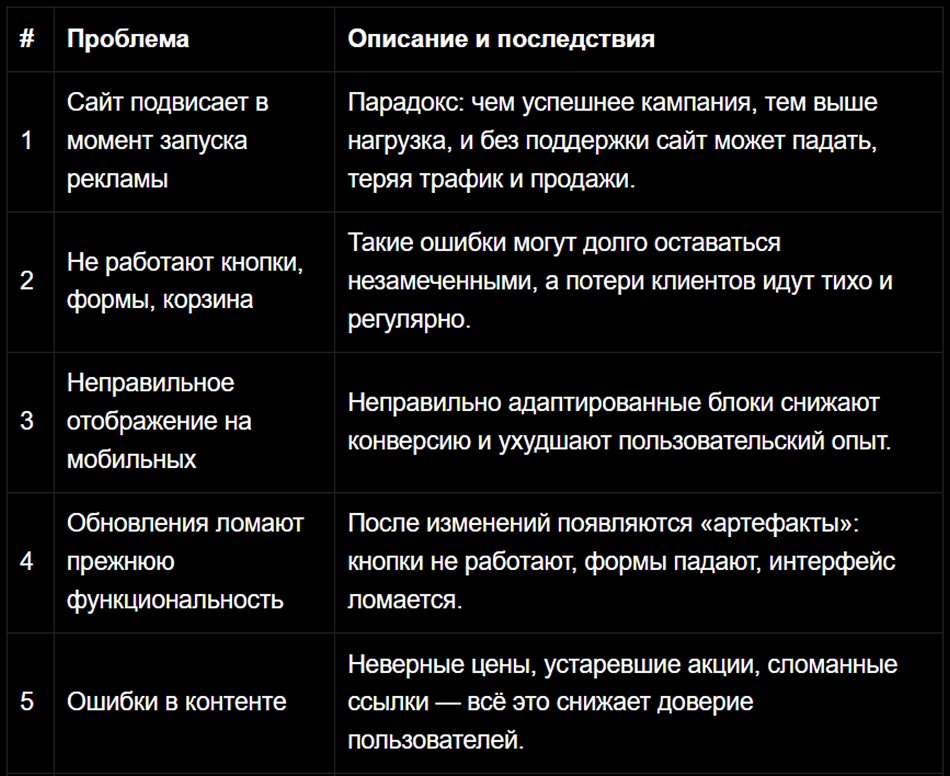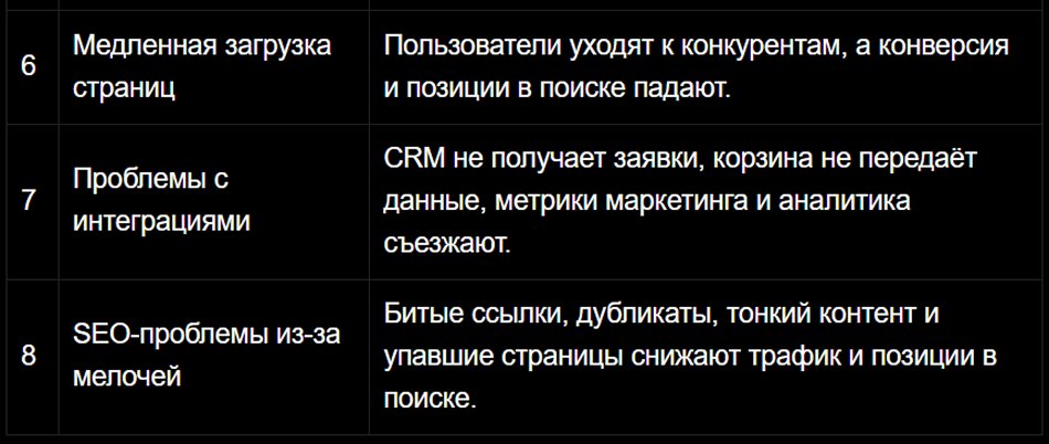 Регулярные обновления, патчи, резервные копии и контроль уязвимостей помогают предотвращать проблемы ещё до того, как они станут катастрофой. Без такой поддержки риск утечки данных, штрафов и потери репутации резко возрастает.