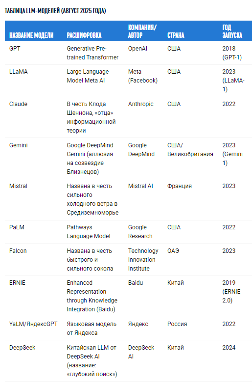 Так что, когда речь идет о собирательном термине, описывающем GPT, DeepSeek, Gemini, точнее будет говорить «большие языковые модели».