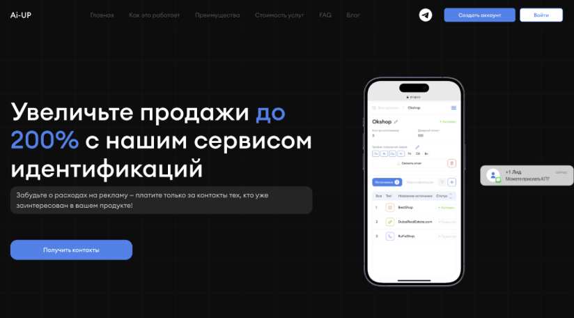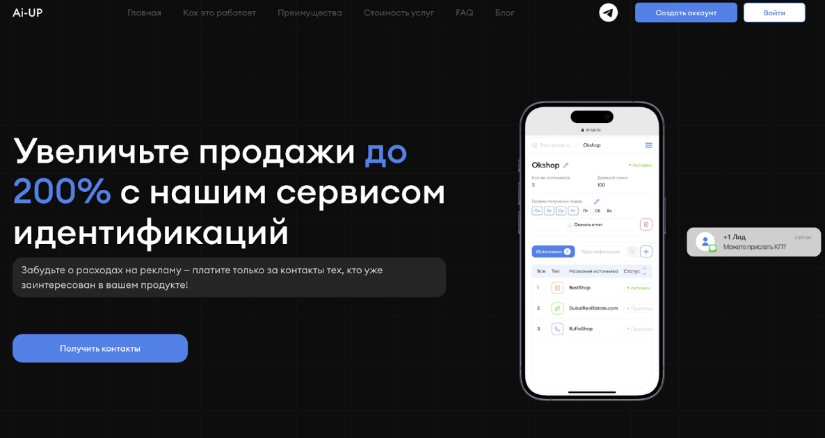 AI-UP — один из самых продвинутых инструментов для перехвата лидов с Авито и других рекламных площадок. Платформа подключается к CRM или Telegram-боту, анализирует объявления конкурентов, выгружает звонки и автоматически распределяет лиды между менеджерами. Дополнительно доступна интеграция с ИИ-обработкой обращений: можно подключить автоответчика, который отвечает клиентам за секунды. AI-UP удобен тем, что даёт готовую аналитику и прогноз конверсии — идеально подходит для тестов и пилотов.