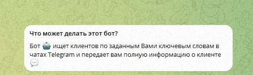 Так же в арсенале телеграм-боты, которые позволяют отслеживать комментарии и сообщения по заданным ключевым словам в выбранных чатах. Конечно, искать потенциальные заявки можно и вручную, но когда таких чатов становится десять и больше, делать это постоянно физически невозможно.