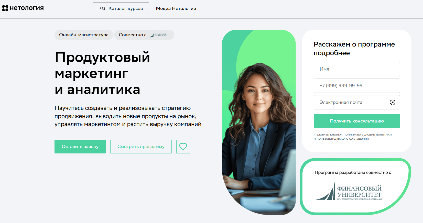 Программа обучения маркетингу и продуктовой аналитике в формате магистратуры, в ходе которой вы узнаете, как создать и реализовать стратегию вывода нового товара на рынок с нуля. Пройдете все этапы продвижения цифрового продукта — от проведения маркетингового исследования до визуализации аналитических данных. Сможете получить практический опыт, приближенный к работе продуктового маркетолога-аналитика — будете учиться под руководством экспертов и менеджеров Роснефти, Сбербанка и других крупных компаний. К концу обучения подготовите несколько проектов для портфолио, среди которых: разработка стратегии продвижения продукта, построение дашборда и другие.