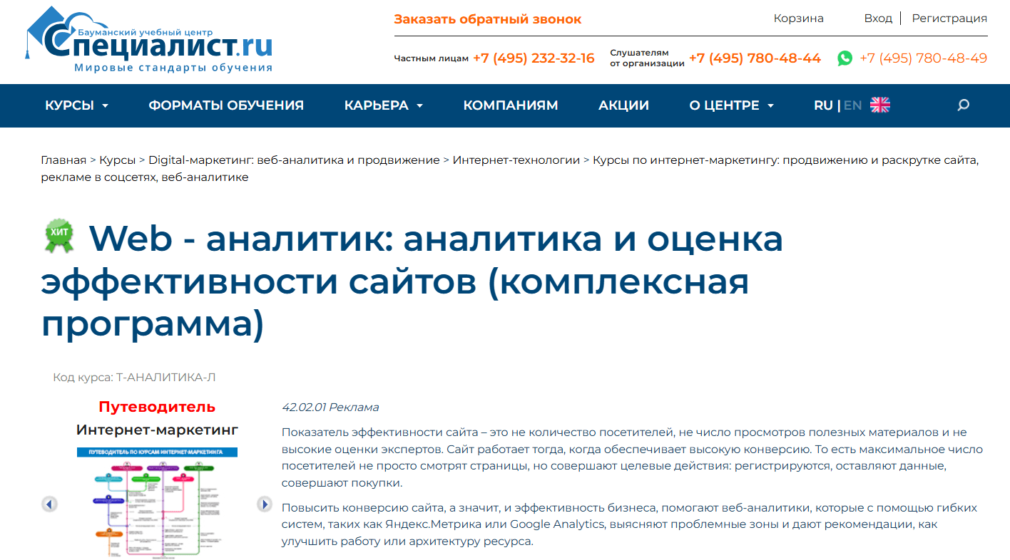 9. Web-аналитик от Специалист.ru — расширенный курс по профессии веб-аналитика с очным и онлайн форматом обучения на выбор.