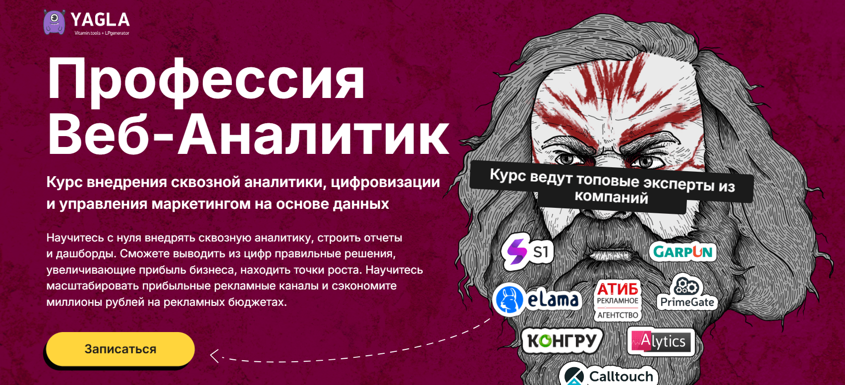 8. Профессия веб-аналитик от YAGLA — продвинутый курс по сквозной аналитике с возможностью стажировки у партнера образовательной платформы.