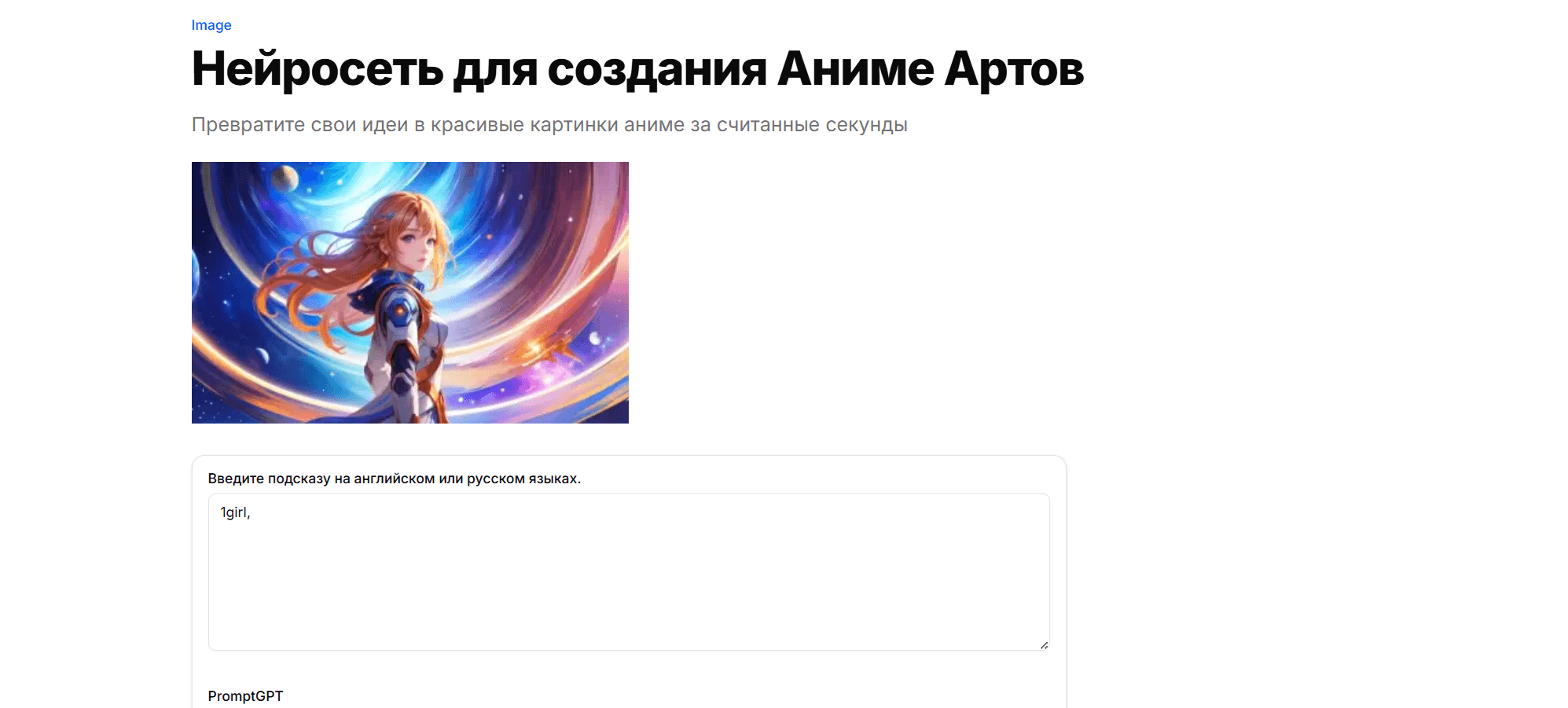 Gptunnel — это целая платформа, предлагающая доступ к различным нейросетям, подходящим для создания аниме-картинок, персонажей и артов. Помимо знаменитой MidJourney, на этом сервисе вы найдете инструменты для генерации изображений в аниме-стиле, работы с фотографиями, а также создания уникальных иллюстраций по текстовому запросу. Сервис предлагает широкий выбор нейросетей, каждая из которых может быть настроена под индивидуальные потребности, будь то создание портретов аниме-девушек или визуализация сложных сюжетов.