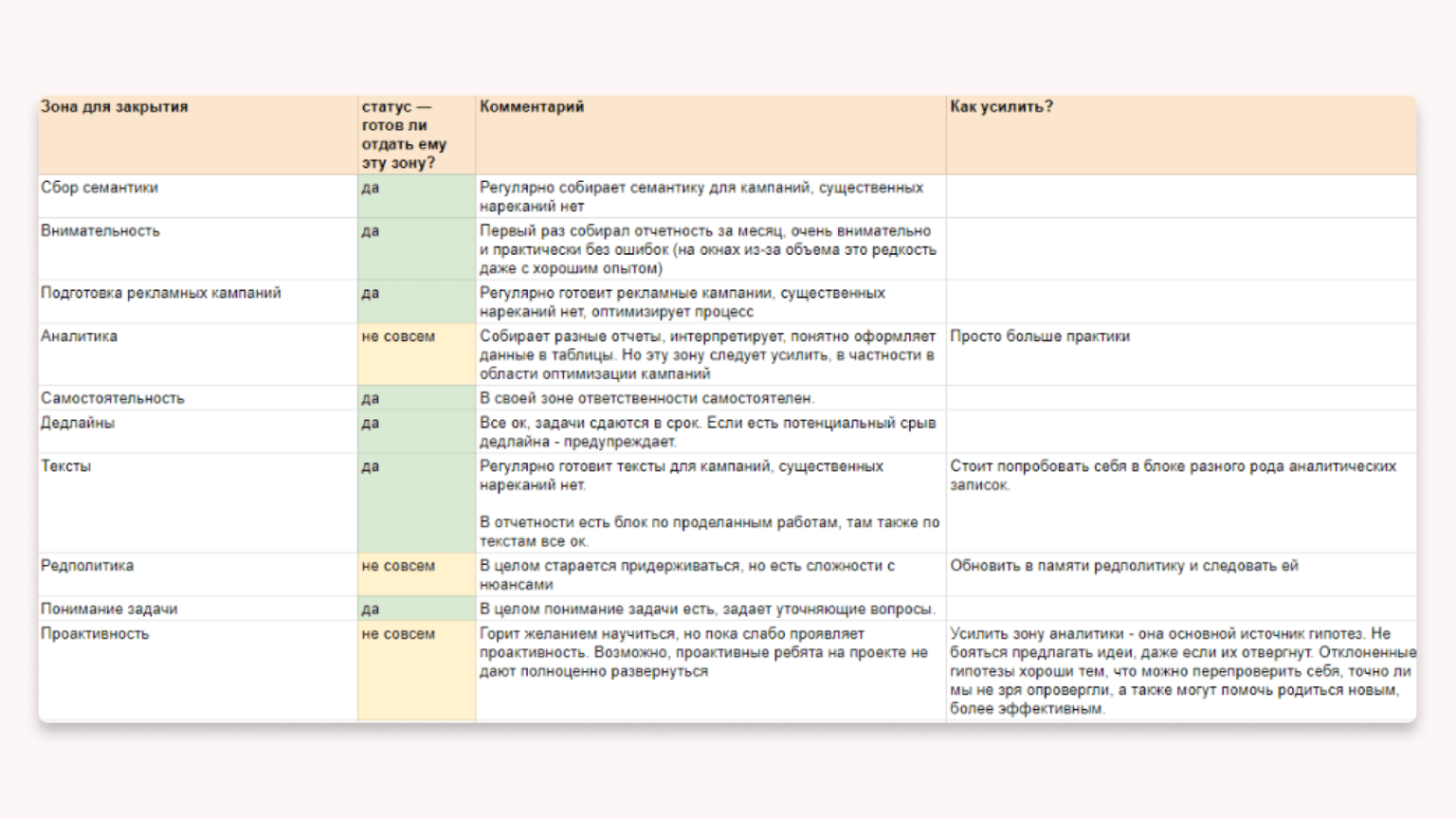 Задачи могут быть свои для каждого уровня. Кстати, примером задач, которые я спрашиваю с Junior-маркетологов, я уже делился в статье.