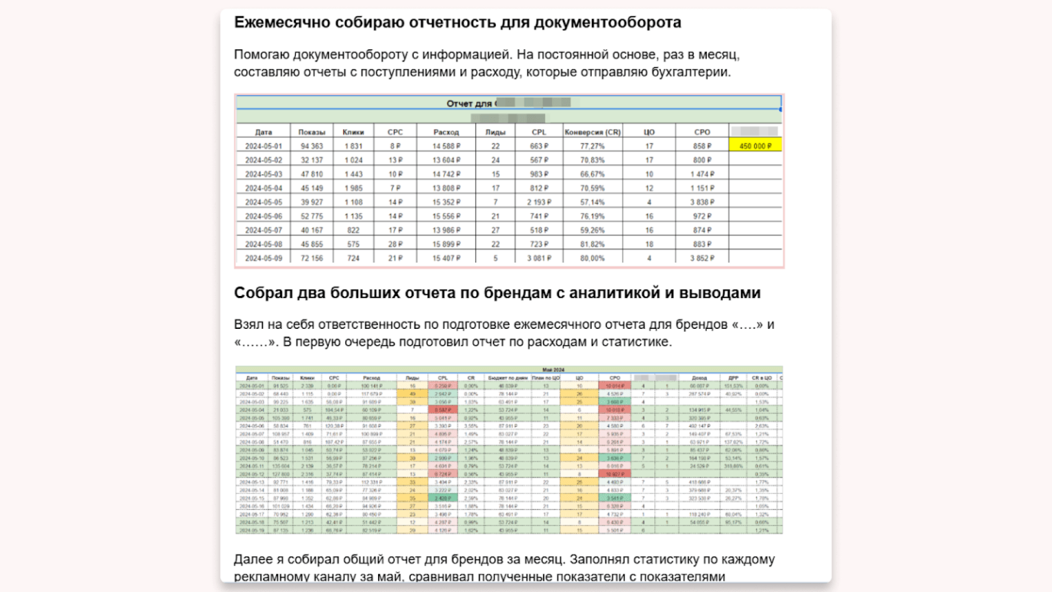 На этом этапе важно показать, что вы уже сделали как специалист на данном месте работы или проекте. Например, как вы автоматизировали рутину, углубили аналитику или, где взяли на себя больше ответственности, а также какие обучения прошли, чтобы получить новые знания и получилось ли внедрить новую информацию в работу.