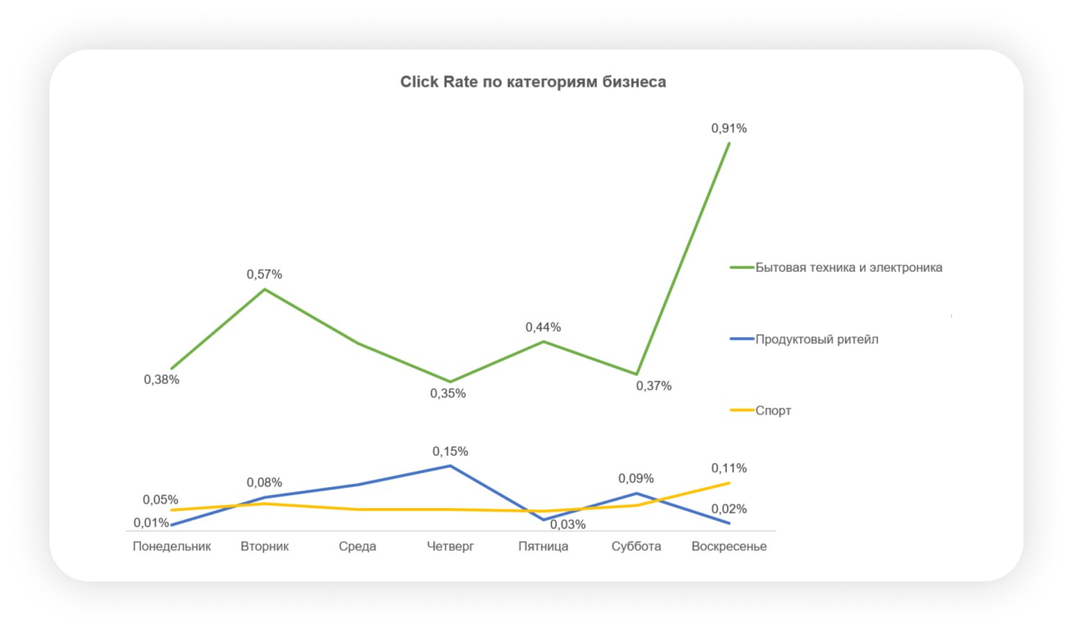 Общий вывод: email для «Продуктового ритейла» - инструмент удержания и удобства. Email для «Бытовой техники и электроники» - мощный драйвер продаж и вовлечения, особенно в выходные. Адаптируйте контент, тайминг и KPI под специфику категории.