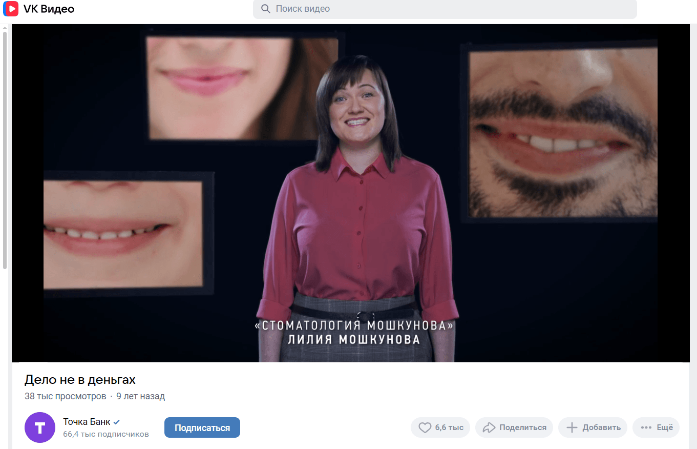 В феврале 2016 года банк «Точка» запустил кампанию «Дело не в деньгах» с видеороликами, в которых снялись реальные предприниматели, пользующиеся продуктами банка.