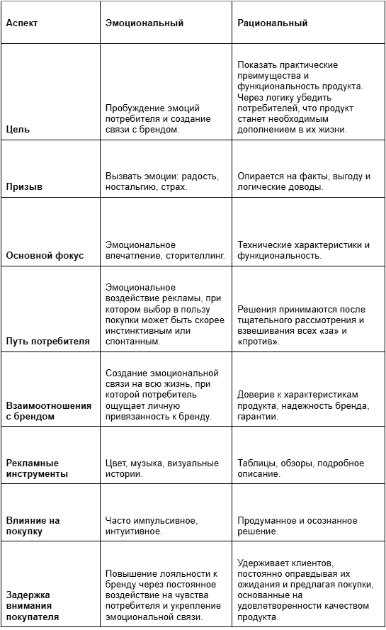 Бренды включают в свои рекламные кампании эмоциональные призывы, которые устанавливают личную связь с клиентами, с рациональной информацией, которая дает четкие и логичные основания для принятия решения о покупке.