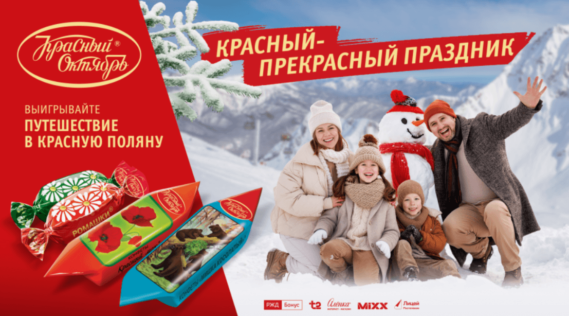 В 2024 году бренд «Красный Октябрь» совместно с агентством GRAPE создали ролик, подчеркивающий красоту и волшебство зимнего праздника, возвращая значение слова «красный» как «красивый» для погружения зрителя в сказочную атмосферу Нового года.
