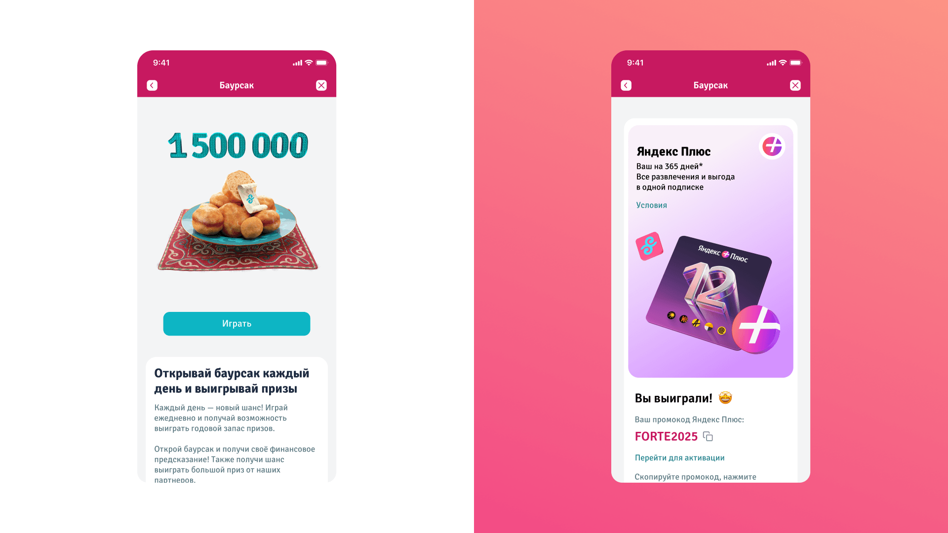 Мы использовали простую механику: тапы, открытие предсказаний, знакомый культурный символ. Пользователь «жарит» баурсаки, открывает предсказания и получает бонусы, которые сразу можно потратить в приложении. Коротко, понятно и с моментальной выгодой.
