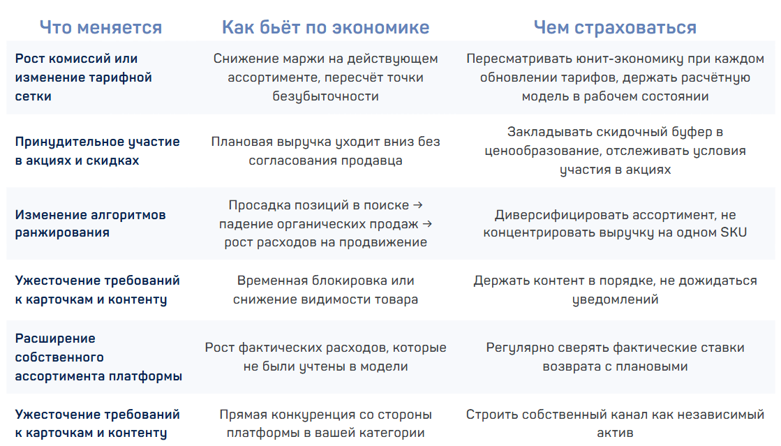 К этому добавляется платформенный риск. 4 февраля 2025 года ФАС вынесла предупреждения Ozon и Wildberries из-за автоматического включения товаров в распродажи без согласия продавцов — со сроком устранения до 28 февраля. Правила платформы меняются, и это бьёт по юнит-экономике не хуже роста себестоимости.